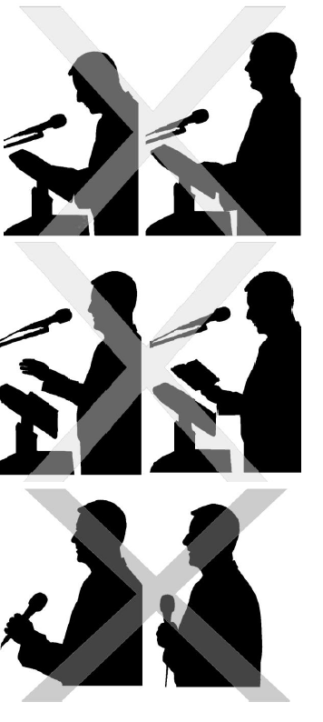 Sempre devemos nos lembrar que quando se aumenta o número de microfones abertos (funcionando simultaneamente), o potencial de “microfonia” também é aumentado! Portanto, é importante manter fechado o volume daqueles microfones que não estiverem, no momento, em uso. Devemos tomar cuidado com o ajuste do microfone para cada orador, a fim não colocá-lo numa posição que interfira no movimento dele ou o atrapalhe, nem prejudique a correta captação da voz.